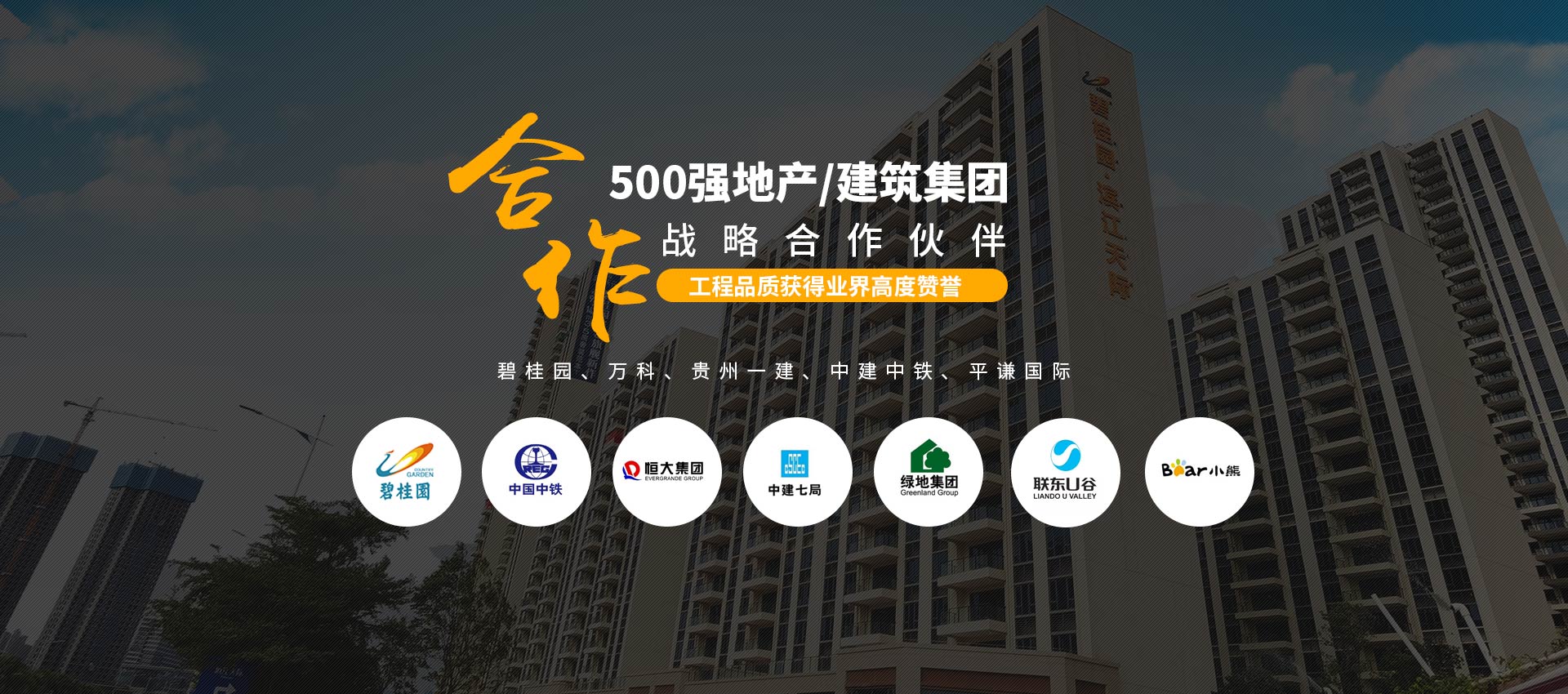 500強(qiáng)指定合作:與“碧桂園、萬科、貴州一建、中建中鐵、平謙國(guó)際、恒大、雅居樂”等地產(chǎn)/建筑集團(tuán)建立長(zhǎng)期的戰(zhàn)略合作關(guān)系。